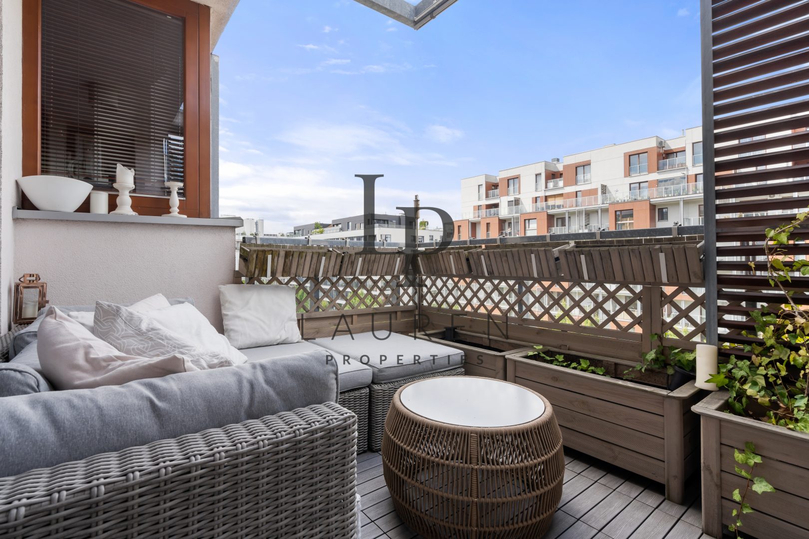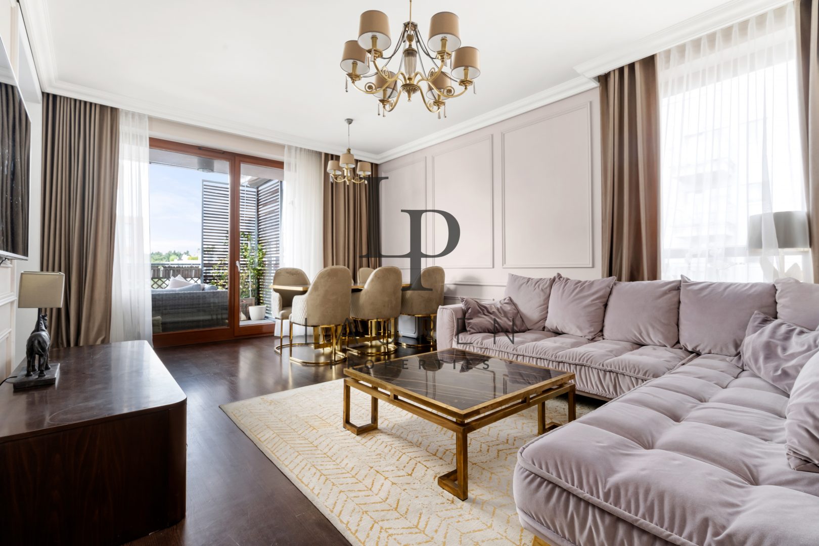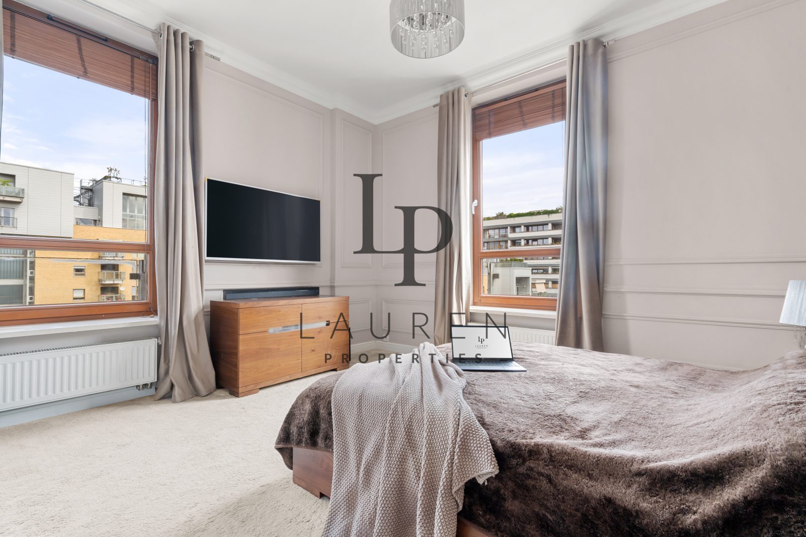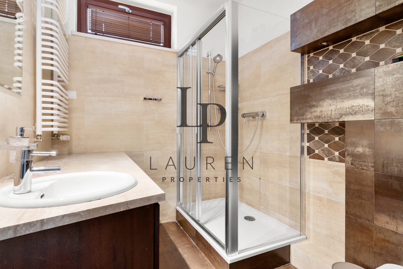 Starannie zaprojektowany oraz wykonany z najwyższą jakością. Stylowa sztukateria na ścianach oraz suficie dodaje elegancji całemu wnętrzu. Stolarka z kuchnią i obszernymi szafami w zabudowie została wykonana na indywidualne zamówienie. Charakteru dodają wiszące lampy cenionej polskiej marki Kutek.