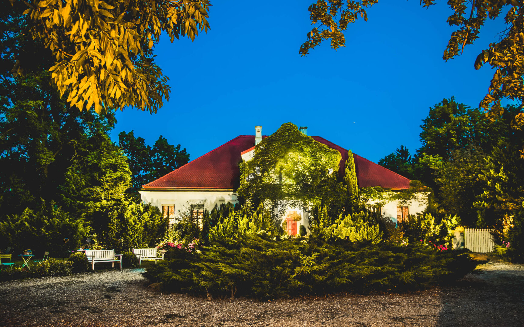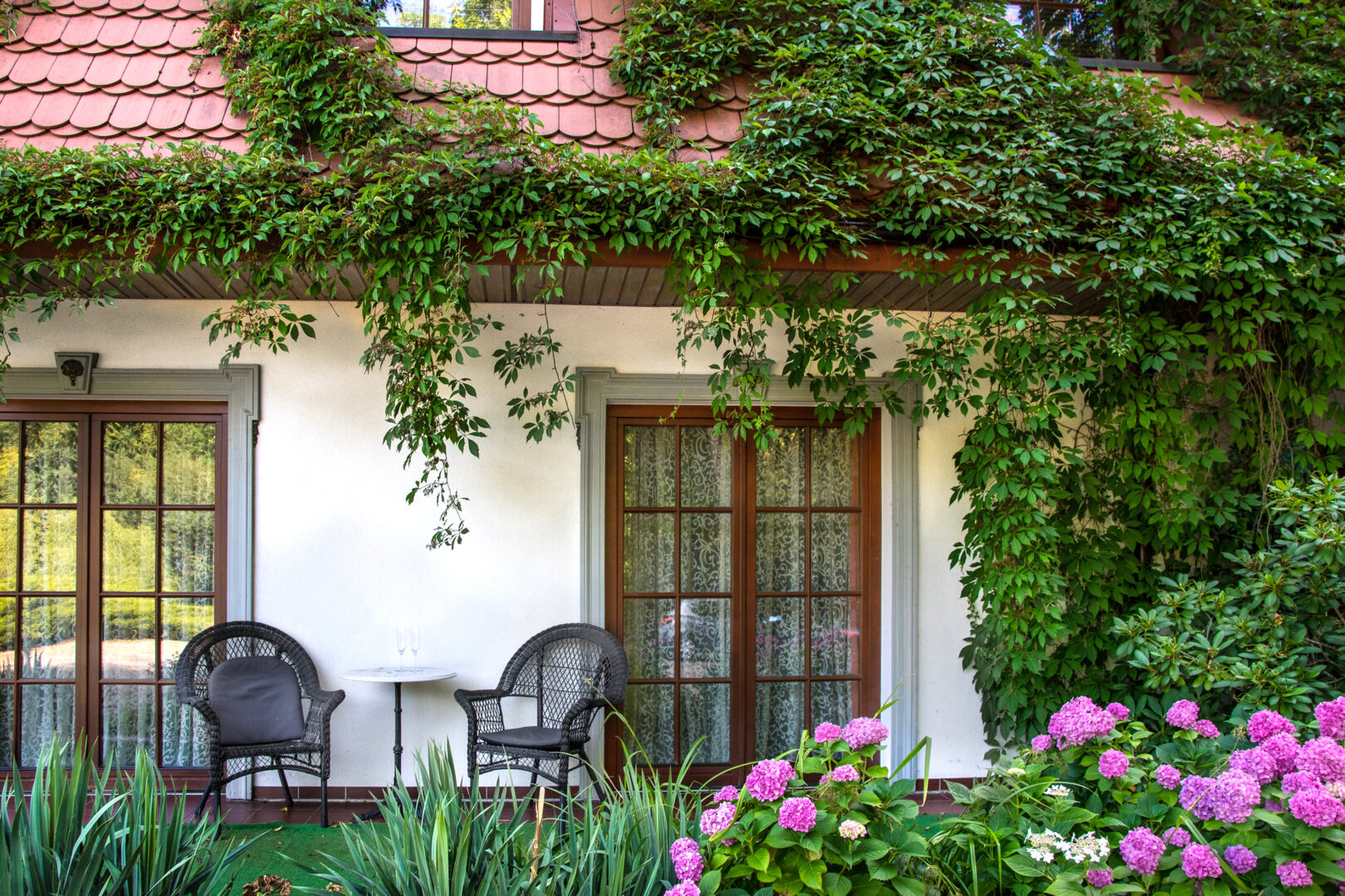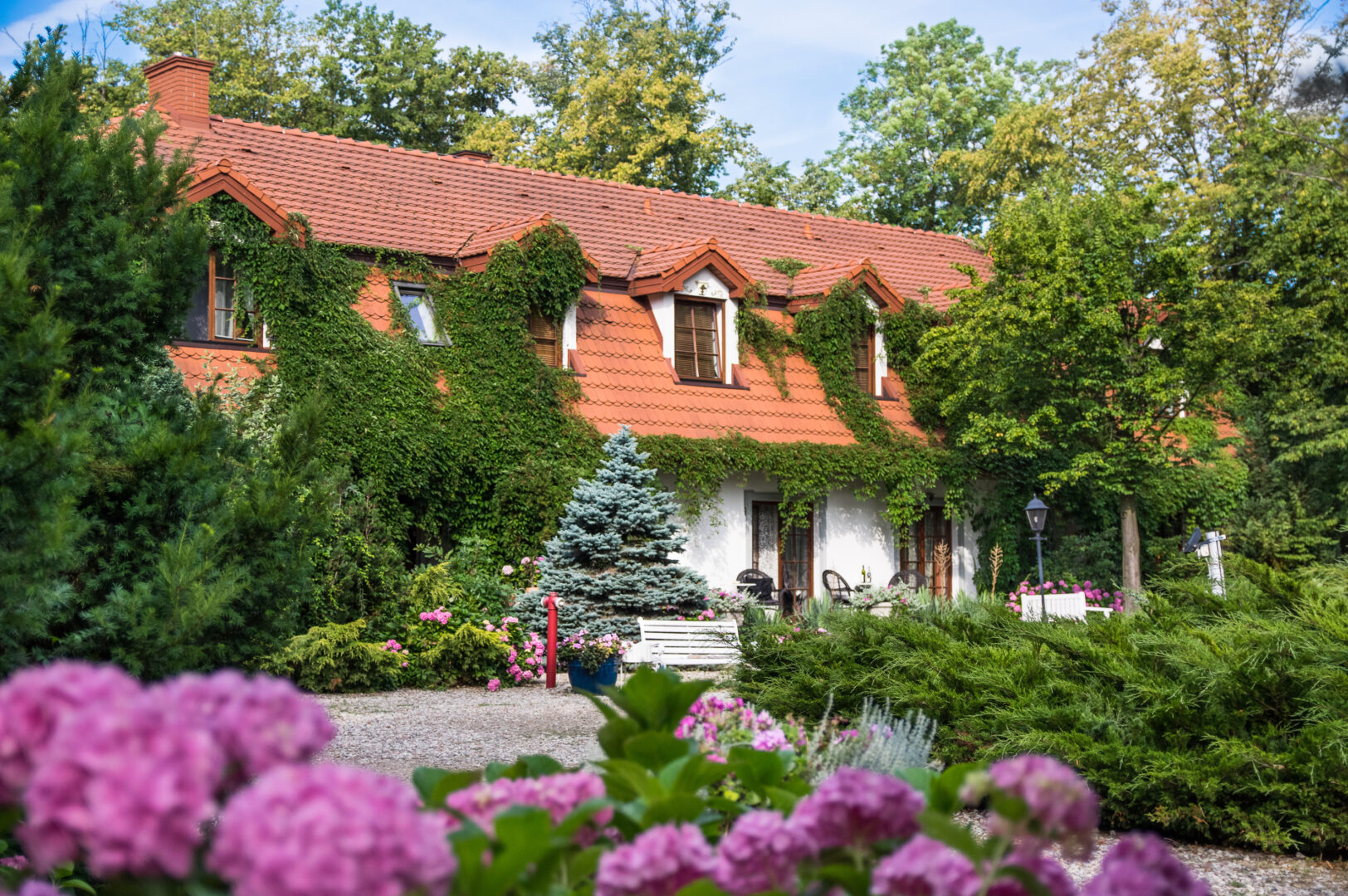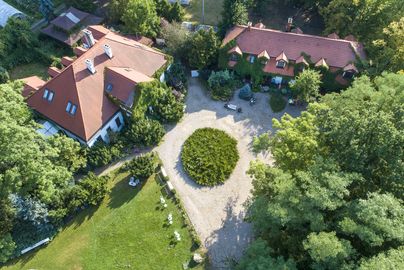 Elewacja, pokryta bujną pnącą zielenią oraz osadzona w malowniczym parku ze starym drzewostanem, nadaje miejscu niepowtarzalny klimat. Wjazd prowadzi przez cały wewnętrzny park, co dodaje niesamowitego poczucia ekskluzywności.