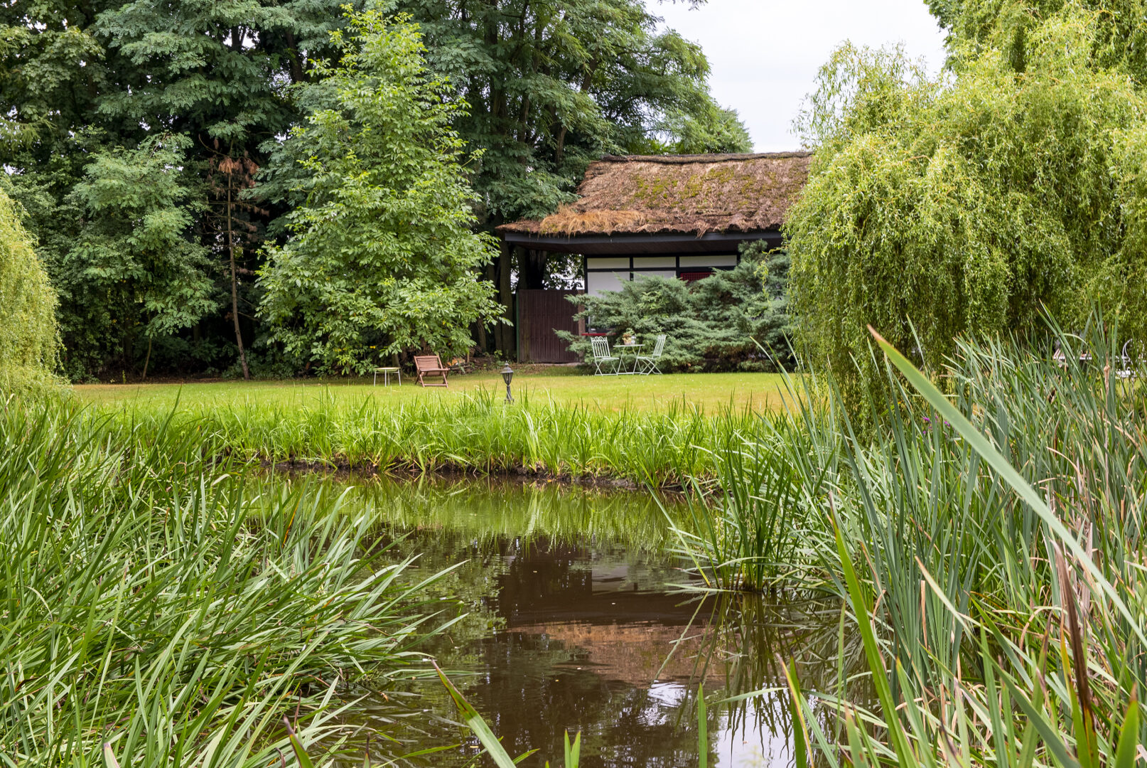 Otaczający teren parku to zabytkowy park dworski – łącznie aż 2,4 ha ze starodrzewem takim jak: akacje, lipy, graby czy jesiony oraz stawem pośrodku, stanowi doskonałe tło dla uroczystości, relaksu i wypoczynku. Bujna zieleń oraz harmonijna kompozycja ogrodu tworzą atmosferę wyjątkowego miejsca.